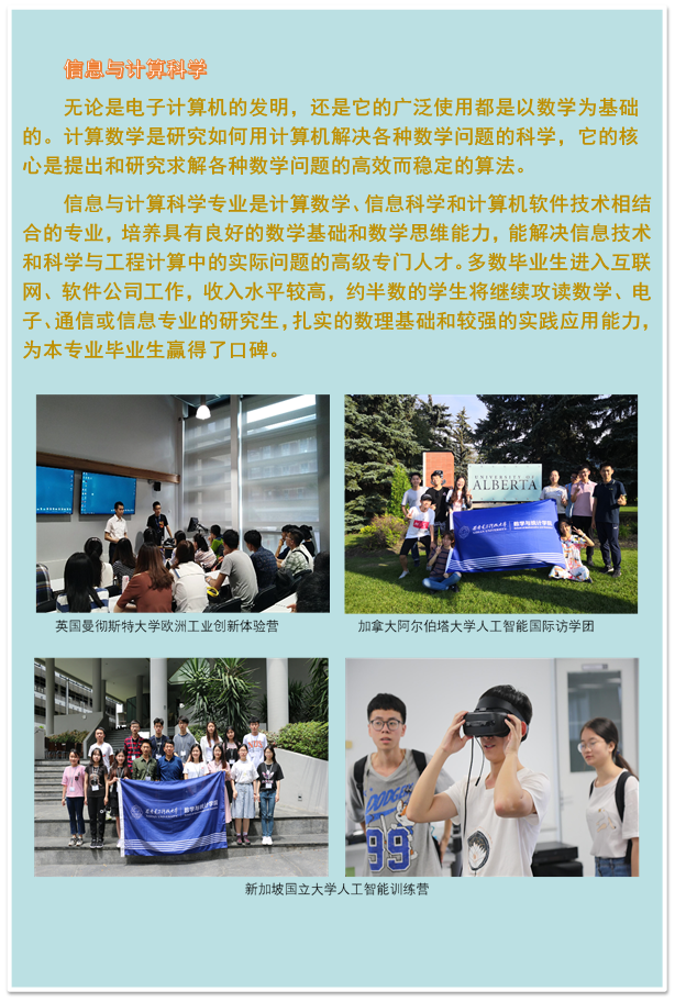 历经多年发展,公司一级学科、二级学科门类齐全,博士点实现数学一级学科全覆盖,硕士点实现二级学科全覆盖。其中,应用数学学科是全国首批硕士点之一,是1996年全国数学学科唯一新增的博士点、西北地区第一个应用数学博士点、陕西第二个数学学科博士点,全校第一个理科博士点。数学学科近三年均入选上海软科发布的 “中国最好学科排名”,2019年排名进入前20%。对于优秀的本科生、硕士生、博士生公司推荐参加国家留学基金委资助的海外访学、联合培养、攻读学位等专项项目。