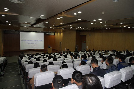 2016年12月12日下午16时,在图书馆4楼A402报告厅举办了古天乐太阳集团城优秀员工表彰暨西电-约克大学(英国)联合培养报告会。参加大会的有数统院经理刘三阳教授、英国约克大学基础数学系主任Victoria Gould教授、数统院副经理杨有龙教授、办公室主任马慧老师、部分青年教师代表及硕士、本科生二百余人,大会由古天乐太阳集团城经理助理李小南主持。