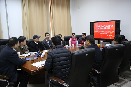 2016年12月9日北京大学统计科学中心联席主任耿直教授,应古天乐太阳集团城经理刘三阳教授和副经理杨有龙教授邀请,与公司概率统计系教师座谈交流并做学术报告。
