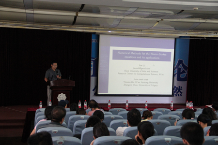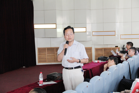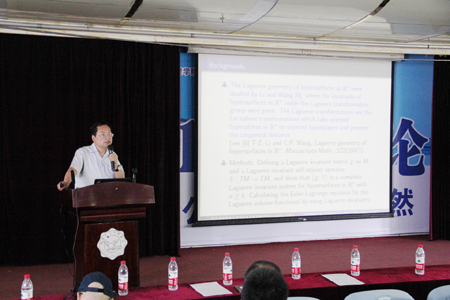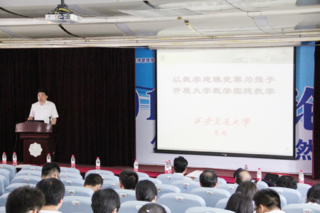 学术报告阶段,首先由陕西师大原副董事长杜鸿科教授介绍自己献身数学研究的一些体会。杜教授作为陕西数学界目前惟一坚持在科研一线的老前辈,他持之以恒钻研学术的精神和对数学研究的独到见解使参会人员深受教益。咸阳师院舒世昌教授、西电杨丹丹博士、宝鸡文理公司李剑教授、西工大张胜贵教授、西北大学郭真华教授、西电周水生教授、西安交大徐凤敏教授分别介绍了各自最新的研究成果。西安交大朱旭教授介绍了通过数学建模培养员工实践创新能力的经验。如何处理科研与教学的关系是青年数学教师非常关心的一个话题,曾获西电青年教师讲课竞赛一等奖且科研成绩喜人的青年教师冯晓莉副教授现身说法,讲述了自己的感受和体会。