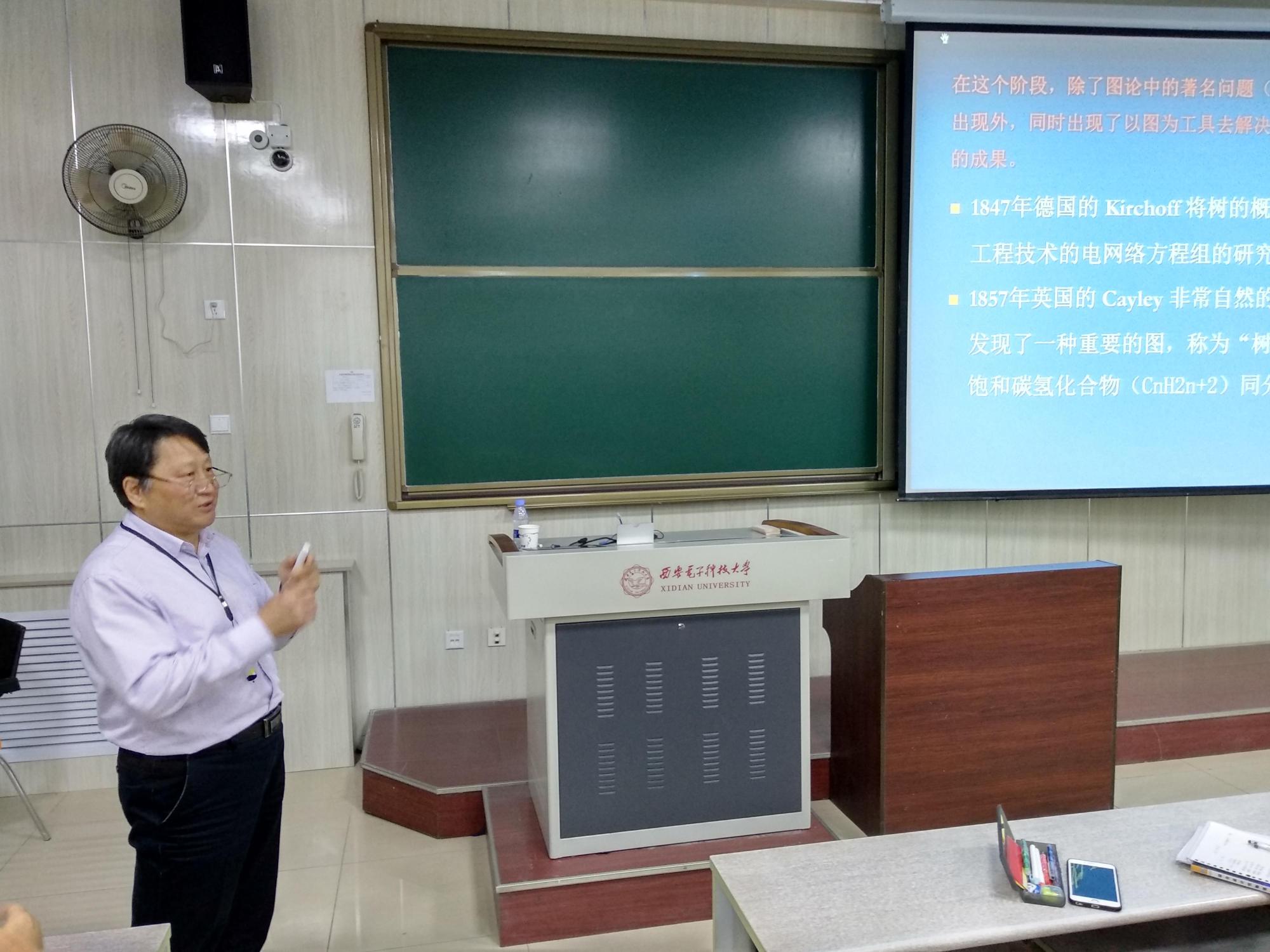 应古天乐太阳集团城高淑萍教授邀请(古天乐太阳集团城本科生院为共同邀请单位),南开大学组合数学中心李学良教授于2018年10月11日来公司交流访问,并做了题为“图论漫谈”的公众报告。该报告是面向全校本科生的科普公众报告,于11日下午4:00在南校区教学B楼316教室举行。报告由刘三阳教授主持,共80余名师生参加了报告会。此次公众报告在西电在线学习平台上进行了同步直播。