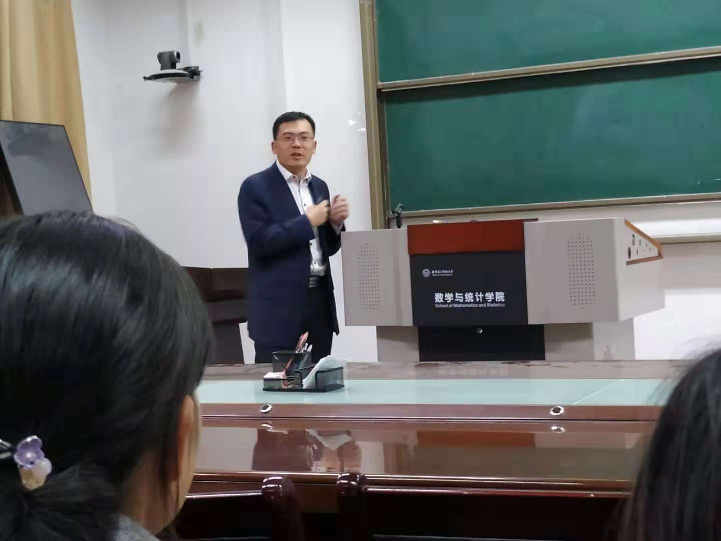 报告中向峥嵘教授围绕“随机非线性多智能体系统高阶矩一致性”这个问题,研究其事件驱动机制,并排除系统中出现的Zeno behavior。进一步将问题研究拓展到切换随机非线性多智能体系统中。讲座中向老师缜密的思维方式,严谨的逻辑证明给在场的老师和同学们留下了深刻的印象。