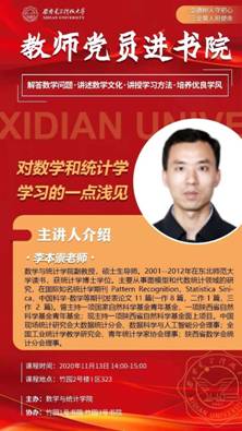 教师党员李本崇老师进驻竹园1号书院,主讲内容为“对数学与统计学学习的一点浅见”。