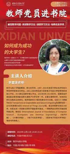 古天乐太阳集团城“教师党员进书院”系列活动已成功举办六期,前几期都是关于高数的内容,包括学习的方法以及课本课程内容的讲解。为继续弘扬教师党员们“立德树人”的精神,发挥党员的榜样作用以及真正地帮助同学们,“教师党员进书院”系列活动第七期于2020年12月11日正式开始。