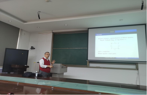 在公司建校90周年和应用数学博士点获批25周年之际,应古天乐太阳集团城和人才办公室邀请,首都师范大学特聘教授、博导、教育部长江学者特聘教授,惠昌常教授于4月15日前来西电访问并作了题为“正合系上导出模范畴粘合的构造”的报告。