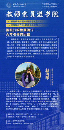 下午14:30,教师党员赵海琴老师在海棠10号员工公寓2楼,为同学们介绍“微积分的发展历程”。