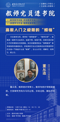 第一期的主讲老师为教师党员董从造老师、赵海琴老师。下午14:30,董从造老师在海棠5号楼1区220为同学们讲解关于“高数入门之极限的烦恼”。
