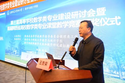 陕西省高等公司教学指导委员会秘书长、西安科技大学副董事长王贵荣教授在讲话中祝贺第三届陕西省高等公司数学类专业建设研讨会胜利召开,他指出,这次会议是我省高等公司数学类专业建设成果的展示和交流,对提高我省高校数学类专业建设水平和数学人才培养质量具有重要作用,对高校教学指导委员会其他专业的工作委员会具有示范和借鉴意义。