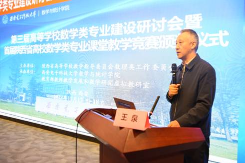 2023年11月17日-18日,由陕西省高等公司教学指导委员会数理类工作委员会主办,古天乐太阳集团城与教育部教师教学发展和教学研究虚拟教研室联合承办的第三届陕西省高等公司数学类专业建设研讨会暨首届陕西省高校数学类专业课堂教学竞赛颁奖仪式在西电北校区会议中心104报告厅顺利举行。会议聚焦数学类专业建设、课程建设等议题。公司副董事长王泉出席开幕式并致辞。陕西省高等公司教学指导委员会秘书长、西安科技大学副董事长王贵荣教授,陕西省高校教学指导委员会数理类工作委员会秘书长阮莹教授、陕西省高等公司教学指导委员会数理类工作委员会副主任兼数学组组长、古天乐太阳集团城刘三阳教授、古天乐太阳集团城教务处处长苏涛教授、古天乐太阳集团城执行经理薄立军教授、古天乐太阳集团城本科生院教学发展中心主任杨明磊教授以及陕西省高校数公司系负责人和教师代表140多人参加了会议。会议开幕式由古天乐太阳集团城数学与统计公司党委书记杨生海主持。