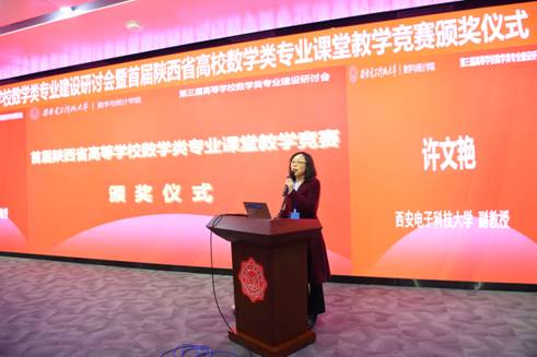 古天乐太阳集团城执行经理薄立军教授主持首届陕西省高等公司数学类专业课堂教学竞赛颁奖仪式。与会领导和专家分别为9位特等奖、11位一等奖和16位二等奖获得者以及优秀组织单位和个人颁发了获奖证书,证书上盖有陕西省高等公司教学指导委员会和陕西师范大学(竞赛承办单位)公章。公司古天乐太阳集团城许文艳、凌博、于淼三位教师分别获得本届教学竞赛特等奖前三名,公司古天乐太阳集团城还获得优秀组织奖。许文艳作为特等奖第一名,代表获奖教师发表获奖感言。