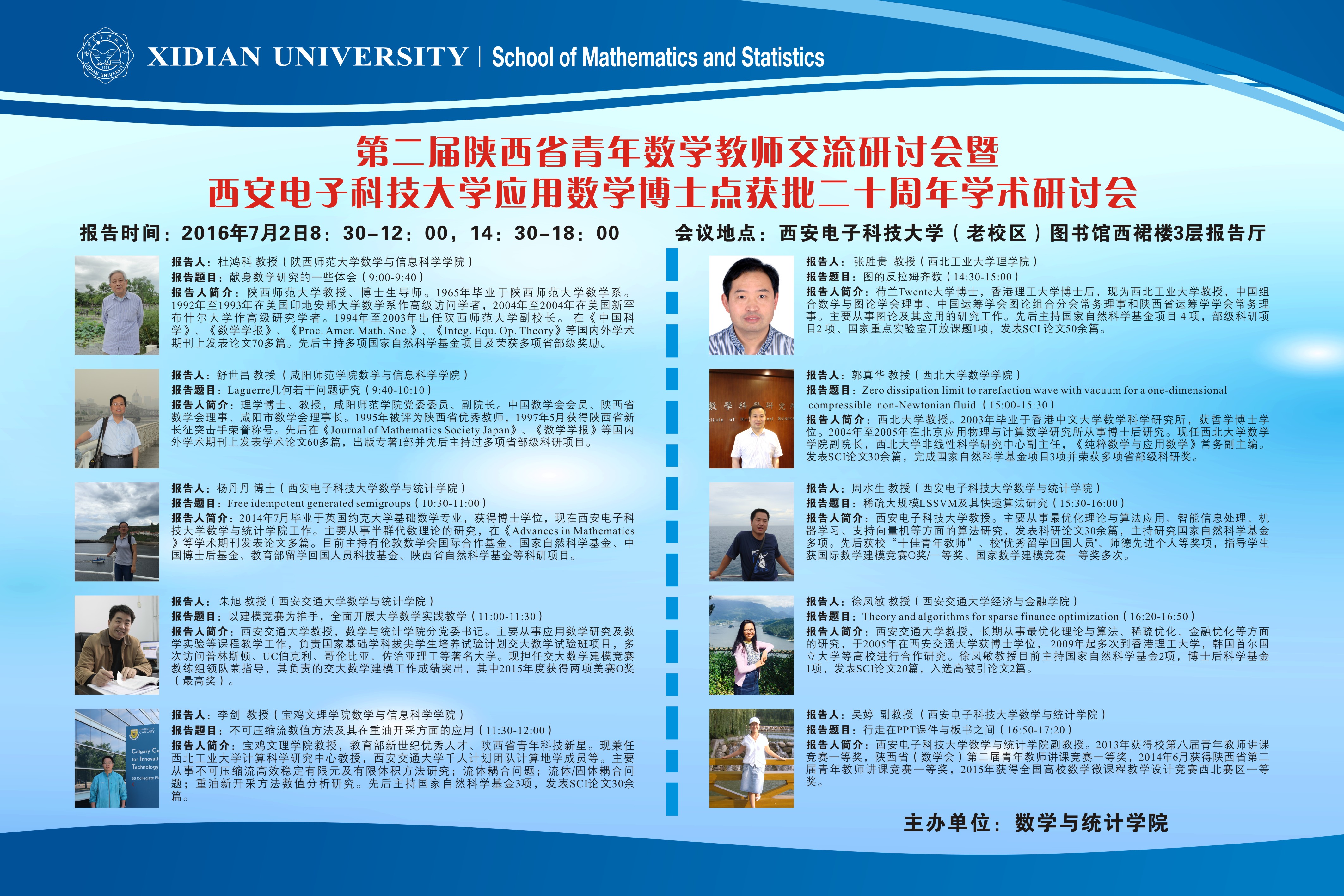 第二届陕西省青年数学教师交流研讨会暨古天乐太阳集团城应用数学博士点获批二十周年学术研讨会会议通知