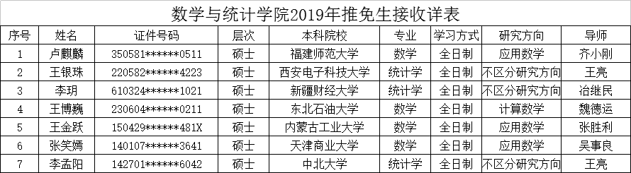 2019年推免生名单