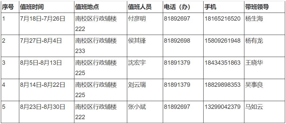2023年暑假值班安排表
