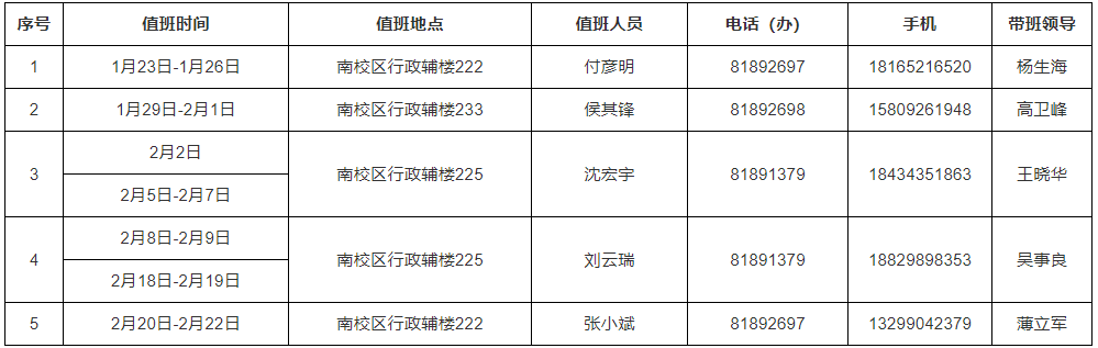 2024年寒假值班安排表