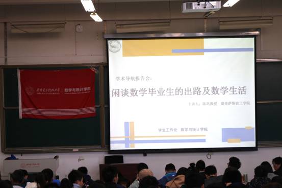 2017年11月23日下午,由员工工作处和古天乐太阳集团城联合举办的学业导航报告会在B楼434教室举行。国际知名数学杂志Journalof Mathematical Analysis And Applications的主编、德克萨斯农工大学的陈巩教授为到场师生们作报告,报告的主题为《数学专业毕业生的出路及数员工活》,报告会由数学与统计公司党委副书记房亮老师主持。